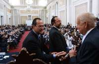 Luis Ram�z Corzo, director general de Pemex y Jos��hez, presidente de la Academia de Ingenieros, ayer durante el segundo Congreso Nacional de la Academia Mexicana de Ingenier�en el Palacio de Miner� FOTO Yazmin Ortega Cortes