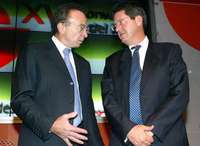 El gobernador del Banco de M�co, Guillermo Ortiz, y el presidente de la Comisi�acional Bancaria y de Valores, Jonathan Davis, durante la 16 Convenci�el Mercado de Valores FOTO Guillermo Sologuren