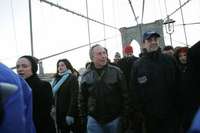 El alcalde de Nueva York Michael Bloomberg (izquierda), camin�er por el puente de Brooklyn a la "hora pico" matutina en compa�de muchos neoyorquinos que se quedaron sin transporte debido a una huelga FOTO Reuters