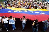 Miles de partidarios del presidente iniciaron la campaña por su relección con una marcha que también recordó el fallido golpe de 1992, que catapultó políticamente al gobernante. "Todos a marchar este sábado por la soberanía y la dignidad", señalaban las consignas.