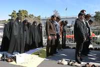 Ampliar la imagen Estudiantes iraníes oran frente a la embajada alemana en Teherán, el jueves pasado, al concluir su protesta por la publicación en periódicos europeos de cartones alusivos a Mahoma FOTOAp