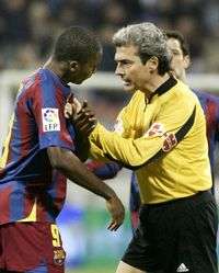Ronaldinho y el entrenador del Barça, Frank Rijkaard, fueron tras el delantero considerado el mejor jugador africano del año, y consiguieron hacerle cambiar de idea, con lo que siguió jugando e incluso contribuyó con un pase para el gol definitivo.