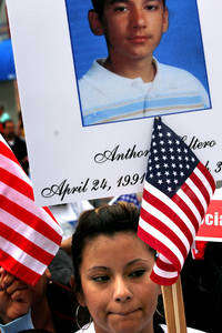 Cientos de personas se manifestaron ayer en Los Angeles, California, en memoria del joven Anthony Soltero, un estudiante de 14 años que el pasado 30 de marzo se suicidó con una escopeta, luego de que fuera amonestado por un funcionario escolar debido a su participación en una marcha contra la criminalización de los indocumentados en Estados Unidos FOTO Ap
