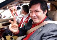 Jorge Hank Rhon, alcalde de Tijuana, Baja California, y Roberto Madrazo, candidato de la Alianza por México a la Presidencia de la República, al término de un mitin en el municipio de Rosarito