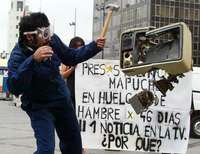 Protesta de artistas chilenos, el pasado 27 de abril, contra la escasa cobertura de las televisoras al caso de los indígenas presos