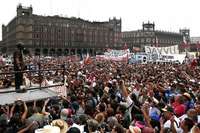 El Zócalo resultó insuficiente para albergar a los asistentes a la protesta obrera de este 1º de mayo contra el gobierno foxista, en la que los trabajadores dijeron estar dispuestos a cobrarle en las urnas al PAN la "sangre minera" el próximo 2 de julio, llamaron a la resistencia civil y advirtieron que endurecerán "hasta las últimas consecuencias" las acciones de repudio contra el Ejecutivo federal, incluida una huelga nacional.