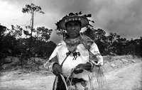 Huichol del pueblo de San Sebastián, municipio de Bolaños, Jalisco. A la derecha otro wixarica, en una zona deforestada en San Andrés Cohamiata