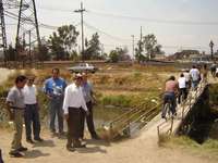Portando flores blancas, mujeres marcharon en silencio por calles de Chimalhuacán durante más de una hora para exigir a las autoridades el cese de la violencia en ese municipio. A la derecha, vecinos de Los Olivos muestran el puente que cruza el canal La Compañía, donde fue hallado el cuerpo de Marlene Natalia Pérez Villafuerte, quien era estudiante de la UNAM