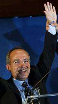 Marcelo Ebrard, candidato de la coalición PRD-PT-Convergencia, celebra su triunfo tras alcanzar una votación cercana a 50 por ciento por la jefatura del Gobierno capitalino. El panista Demetrio Sodio sumó 27.4 por ciento de sufragios y la priísta Beatriz Paredes, 21.3. Más de 5 millones de capitalinos se volcaron a las urnas FOTOS Carlos Cisneros