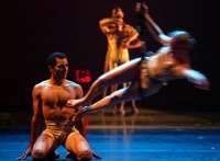 Desafío a la ley de gravedad: flotan ligeros, suspendidos con la ayuda de arneses, en evoluciones en momentos acaso circenses, por antonomasia, sorprendentes. Dúctiles, sus cuerpos confrontan los límites de la anatomía humana, lo mismo en contorsiones que en derroche de fortaleza.