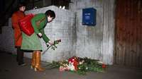 Foto de archivo de la periodista asesinada. A la derecha, jóvenes depositan flores en la puerta de la casa de la reportera