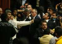 Todavía al final, concluida la delirante y atropellada ceremonia donde se impuso la banda presidencial a Felipe Calderón, y cuando unos y otros salían del recinto parlamentario, panistas y perredistas siguieron insultándose, echando camorra, lanzándose bravatas y denuestos.