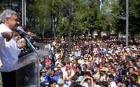 Frente a una multitud que llenó el Zócalo y marchó luego con él hasta Paseo de la Reforma y Lieja, Andrés Manuel López Obrador advirtió que no cederá en la lucha contra la "minoría rapaz" que se robó la elección del 2 de julio y se impuso "con un golpe de Estado" en la Presidencia de la República.