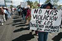 Oaxaca, Oax., 1º de diciembre. Alrededor de 5 mil miembros de la sección 22 del Sindicato Nacional de Trabajadores de la Educación (SNTE), e integrantes de la Asamblea Popular de los Pueblos de Oaxaca (APPO), "rompieron el miedo a ser detenidos, y con ello derrotaron el cerco policaco que se ha tendido en los recientes días para terminar con el movimiento social de protesta", afirmó Florentino López, vocero de la asamblea, durante la marcha que este día se llevó a cabo por diversas calles de la capital oaxaqueña.