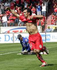 Vicente Sánchez eludió al portero Miguel Calero y anotó el tanto del triunfo choricero