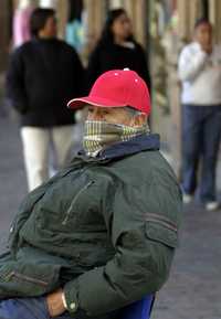 Un habitante de Guanajuato se protege del intenso frío