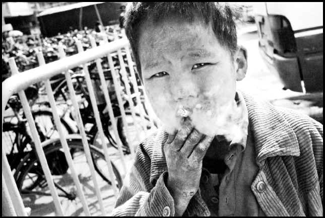 que vive bajo unas escaleras en la calle. Estación Xian, 2000. Fotos: