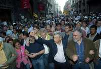 La tarde de ayer, por primera vez en la historia reciente del país, llegaron al Zócalo organizaciones sindicales, campesinas, sociales, así como diversas corrientes de PRD, PT y Convergencia, e inclusive del PRI, para demandar al gobierno de manera conjunta un ''nuevo pacto social'', que modifique la política económica, asegure alimentación, el empleo, la soberanía sobre los bienes nacionales y frene la exclusión y represión.