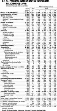 Según las cifras revisadas del Departamento de Comercio de Estados Unidos, su producto interno bruto (gross domestic product) ascendió en 2006 a 13 billones 245 mil millones de dólares (Gráfico 1). De sus componentes: