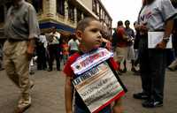 Un menor costarricense con propaganda en favor del no al TLC con Estados Unidos, al terminar ayer la campaña para el referéndum del próximo domingo