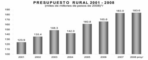 Esto, al tiempo que el Ejecutivo presentó una propuesta del PEC que redujo sustancialmente, de 136 a 61, el número de programas que ejercen, entre otros, las secretarías de Agricultura, Reforma Agraria, Economía, Salud, Educación, Medio Ambiente, del Trabajo y las instituciones financieras del medio rural. Esa reducción, que convirtió en “componentes” programas que antes existían, incluidos los de apoyo al maíz, frijol, caña de azúcar y leche, ha generado inquietudes en el sentido de que el Ejecutivo busca mayor discrecionalidad en la aplicación de los recursos. Pero varias agrupaciones, las que en 2002 crearon el movimiento El Campo no Aguanta Más, están llamando la atención en el sentido de que los recursos del PEC, en particular los de orientación productiva y de capitalización, se concentran en productores capitalizados y en el norte de la República, y entonces obtener más presupuestos significa ampliar las desigualdades e injusticias en el medio rural. Por ello, un planteamiento que hacen es modificar la estructura institucional del Ejecutivo. Buscaron en la coyuntura de discusión del PEF 2008 inducir a la creación de la “secretaría de reforma agraria y desarrollo rural”, la cual tendría su enfoque en todos aquellos productores de pequeña y mediana escala que no son objeto de atención de parte del Ejecutivo hoy día, en particular de la Secretaría de Agricultura. |