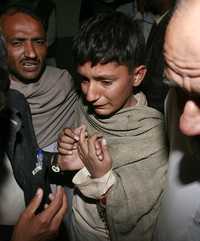 Un adolescente se conduele por la muerte de un familiar, víctima de un ataque con bomba ayer, a la salida de una fábrica textil de Karachi, Pakistán