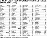 La expansión de los grandes corporativos financieros hacia las regiones en desarrollo (objetivo central de la liberalización) ha sido frenética en las últimas dos décadas, aunque su penetración en los distintos países ha sido muy dispar. Según el Banco Mundial, en un extremo están los países en desarrollo que no han cedido ni permitido la entrada de los bancos foráneos en su sistema como es el caso de China, Sudáfrica, Irán, o Bangladesh (Gráfico 2), o que lo han permitido en muy baja proporción, como en India (sólo 5% de los activos bancarios del país son operados por bancos foráneos), Ecuador o Nigeria. En el siguiente nivel de baja participación foránea (10-30% de los activos) se encuentran: Rusia (13%), Colombia (18), Costa Rica (22), Pakistán (23), Brasil (25), Argentina (25) e Indonesia (28%).
