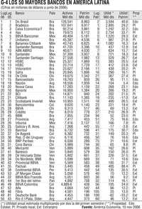 De los 50 mayores bancos, 21 están en Brasil, siete en México, seis en Chile, cinco en Argentina, cuatro en Venezuela, tres en Colombia, dos en Perú, y uno en Uruguay y Panamá.