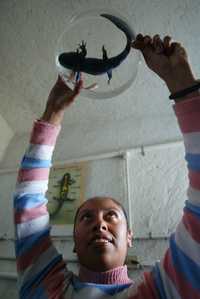 Una especialista muestra un ejemplar en el Centro de Investigaciones Biológicas y Acuáticas de Xochimilco