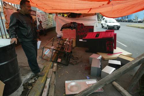 Explicó que el campamento se mantiene con el dinero que consiguen por el lavado de carros y el boteo, y anunció que dada la difícil situación económica, próximamente “empezaremos a vender tacos, porque no contamos con recursos”.