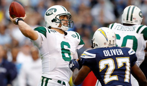 Mark Sanchez, el mariscal de ascendencia mexicana del equipo neoyorquino, guió a su escuadra para derrotar 17-14 a los favoritos Cargadores de San Diego. Ahora disputarán el campeonato de la Conferencia Americana ante los Potros de Indianápolis y el pase al Supertazón, que se realizará el 7 de febrero en Miami. En el otro juego dominical, los Vikingos de Minnesota apaleraron 34-3 a Dallas y pelearán el gallardete de la Nacional contra Nueva Orleáns. El veterano Brett Favre tuvo 15 pases completos para una ganancia de 224 yardas Foto Reuters