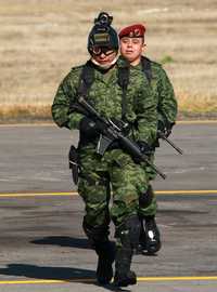 Como parte de los festejos por los 95 años de la FAM se realizó un desfile aéreo. A diferencia de la práctica del pasado lunes, en la que los paracaidistas que saltaron no cayeron en el objetivo, ayer, los primeros 14 que se lanzaron de un avión Arava aterrizaron sin contratiempo; después, para evitar errores, los organizadores decidieron reducir de 50 a 30 los paracaidistas que se tiraron de cada uno de los tres Hércules C-130, quienes también hicieron la maniobra sin novedad.