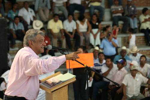 López Obrador reiteró: “Queremos transformar el país de manera pacífica, y aunque parezca difícil, porque hay quienes piensan que esta mafia no va a aceptar nada ni va querer ningún cambio por la buena, yo sostengo que sí; cuando el pueblo esté completamente organizado y despierto”.