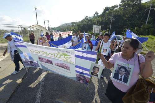 Las madres, procedentes de cuatro países de Centroamérica, traen colgadas en el cuello las fotos de sus hijos, hijas, esposos, esposas, hermanos o hermanas, así como datos sobre el familiar desaparecido.