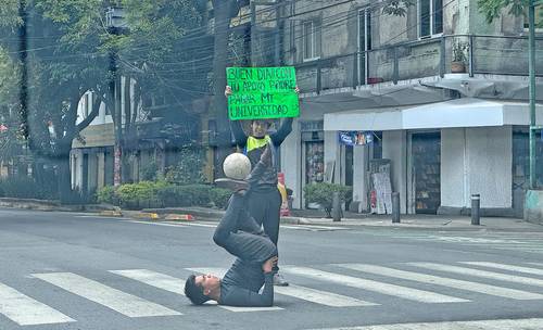 ▲ En calles de la Ciudad de México, unos piden dinero a los automovilistas para subsistir; otros, hacen piruetas y malabares con la finalidad de convencer a los conductores de que cooperen para que puedan continuar sus estudios, en este caso a nivel licenciatura.Foto Marco Peláez