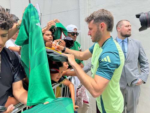 Los más solicitados fueron Santiago Giménez, Guillermo Ochoa, Raúl Jiménez, Edson Álvarez y el propio Vasco Aguirre, quie-nes firmaron playeras, balones, entre otros artículos, y se tomaron varias fotografías.