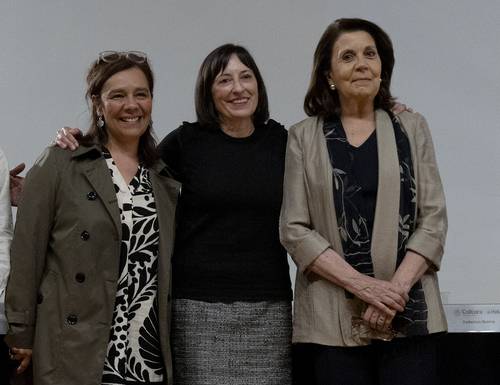 ▲ Haydeé Boetto, Ana Lara y Consuelo Carredano en la sala Manuel M. Ponce del Palacio de Bellas Artes, durante la presentación de la nueva etapa de Ediciones Mexicanas de Música, fundada por Rodolfo Halffter y otros compositores en 1947.Foto María Luisa Severiano