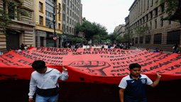 ◀ Estudiantes de la Normal Rural de Mactumactzá señalaron que autoridades estatales y federales les han dado la espalda en torno a la investigación del homicidio de su compañero Jesús Alaín Vázquez, cometido el 15 de mayo en Chiapas. Hubo marchas en la Ciudad de México (en la imagen), adonde hicieron un mitin en el Zócalo, y en Tuxtla Gutiérrez. Foto Jorge Ángel Pablo García