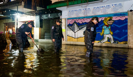 ▲ Las precipitaciones pluviales de ayer dejaron 51 encharcamientos, la caída de 39 árboles y la suspensión del servicio de la línea 3 del Cablebús debido a una tormenta eléctrica alrededor de las 19 horas. El lunes pasado cayeron más de 32 millones de metros cúbicos de agua, lo que equivale a llenar 16 veces el estadio Azteca. Foto Roberto García Ortiz / Elba Mónica Bravo y Alejandro Cruz