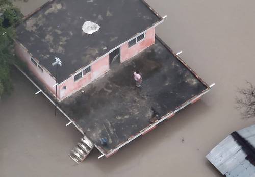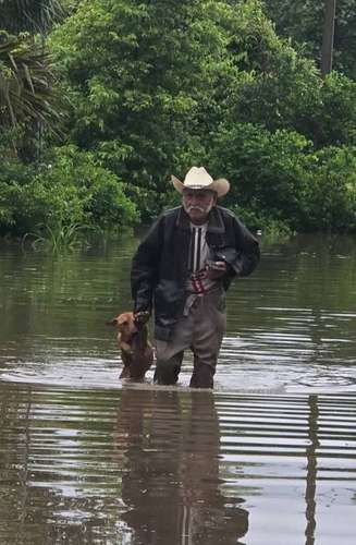 ▲ Un habitante de Gómez Farías rescató a su mascota de una inundación en ese municipio tamaulipeco.Foto Cortesía de El Mañana de Reynosa
