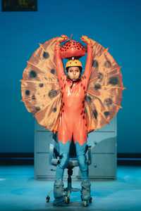 El diseño escénico de Zaira Campirano transporta al público a un mundo submarino, donde la habitación del protagonista se transforma en una pecera gigante. La escenografía es colorida y transformable para dar vida a un universo acuático en el que los actores se convierten en pulpos, peces gigantes y criaturas fantásticas mediante llamativos vestuarios.