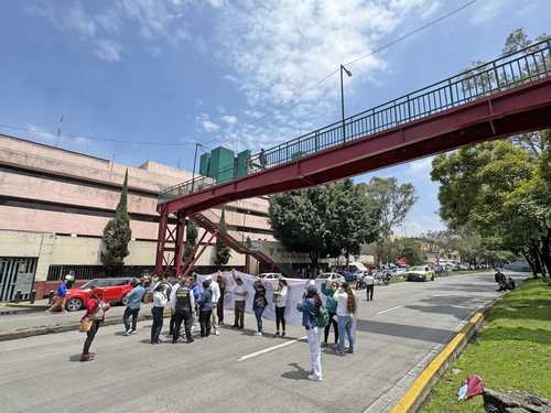 ▲ Trabajadores del Instituto Mexicano del Seguro Social bloquearon Circuito Interior, frente al hospital La Raza, para exigir un régimen de jubilación digno. Policías de la SSC agilizaron la circulación en la zona.Foto Alfredo Domínguez Noriega